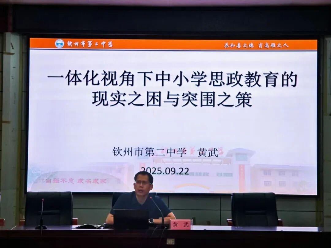 9月22日,马克思主义学院与钦州市第二中学联合举办“民族同心・爱国同行”大中小学思政课一体化建设研讨会暨铸牢中华民族共同体意识教育集体备课活动,并同步启动2024级学科教学(思政)专业硕士生教育实习工作。两校教师代表及黄武名师工作室成员百余人参加会议。