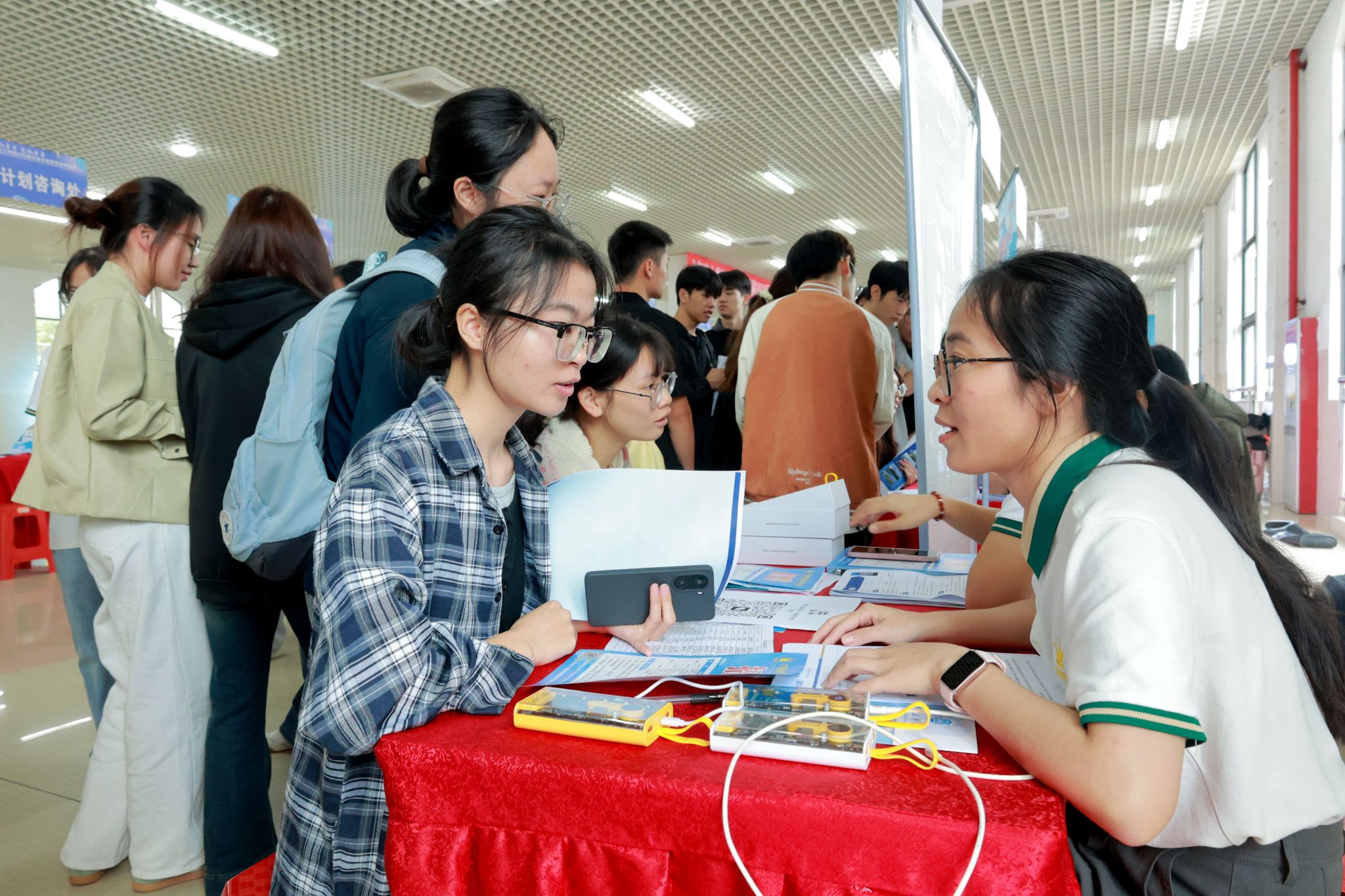 双选会现场特别设置了高校毕业生就业创业政策咨询专区,提供“三支一扶”“西部计划”“应征入伍”等政策咨询服务,为毕业生提供精准的就业政策解读和专业的职业生涯指导,助力毕业生把握就业机遇、明确发展方向。(卢琳 摄)