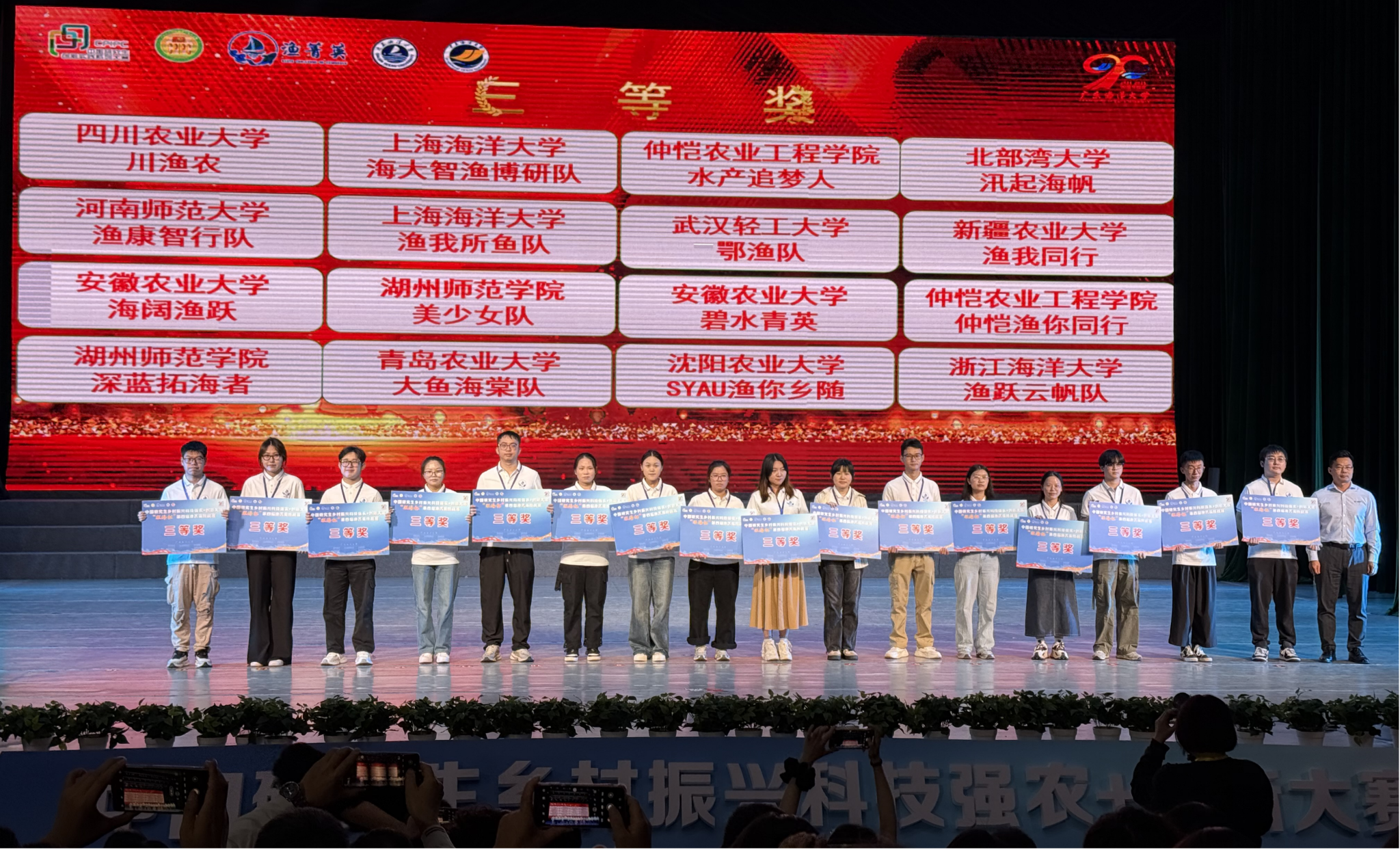 10月24日至26日,中国研究生乡村振兴科技强农+创新大赛暨“旺海杯”第四届渔菁英挑战赛在广东海洋大学举行。必威西汉姆联海洋学院渔业发展专业研究生组成的三支队伍获奖,展现了良好的专业素养与创新实力。由徐振文、林政静、胡硕组成的“鱼额宝队”荣获全国团体二等奖。由李奇峰、范东帅、韦柳迷组成的“汛起渔帆队”与张兴仟、欧海旭、陈浩铭组成的“海洋之星队”均获全国团体三等奖。
