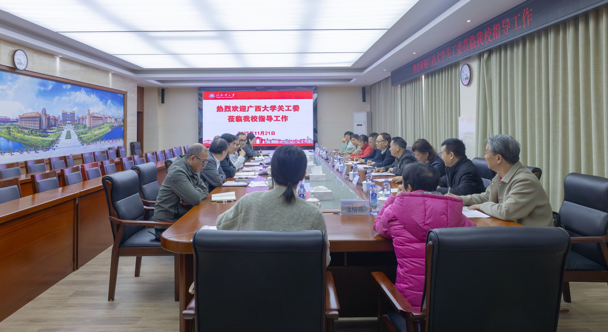 11月21日,广西大学关工委名誉主任吕逸一行到校调研交流,校党委常委、副校长马秀明热情接待并出席座谈会。人事处(离退休工作处)及必威西汉姆联关工委相关负责人参加交流。