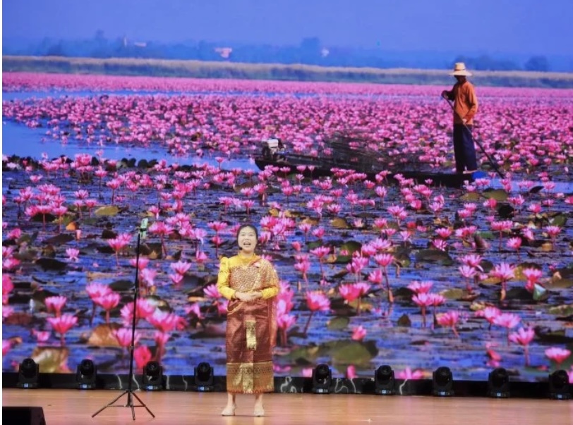 江小蝶同学在决赛中就泰国著名旅游景点红莲湖进行即兴演讲与推介