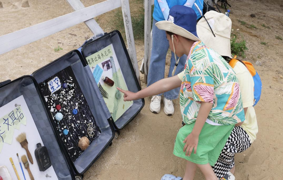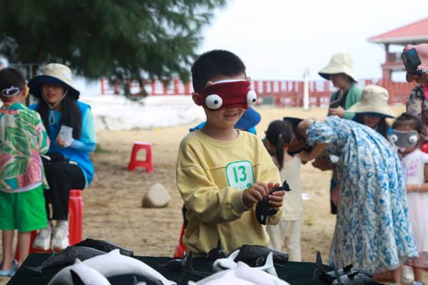 在沙滩上开展的“盲人摸鲸”和“沙滩寻宝”小游戏中,小朋友们在家长的引导与帮助下,学习到了丰富的有关中华白海豚的知识。沙滩上放置的一个个行李箱引人注目,这是由bw必威西汉姆联官方网站海洋协会的同学用捡来的海上垃圾做成的垃圾博物馆;通过垃圾博物馆的展示,让大家意识到垃圾对海洋的危害,提升海洋保护意识。