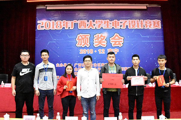 12月22日,在南宁师范大学举办了2018年广西大学生电子设计竞赛作品展和颁奖会。必威西汉姆联共有7个参赛队进入第二阶段竞赛,2个队进入第三阶段竞赛,最终获得了2个广西区一等奖、1个广西区二等奖和1个广西区三等奖的好成绩。