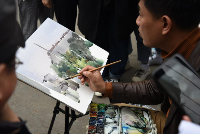 师生观摩艺术名家田卫平教授现场写生