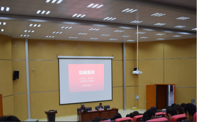 张龙书记在发言中指出,大学时期是学习专业知识的重要阶段,也是今后艺术发展的宝贵时期。除了刻苦学习之外,学生们还需要从成功的艺术名家身上寻找学习的有效途径和方法,深刻领悟他们的艺术见解,从而开拓我们的艺术视野,提升学习效率,创作出优秀的作品。田教授的讲座给予我们明确的启迪和思考。