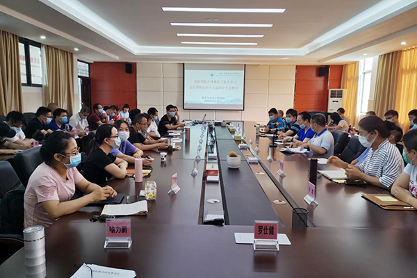 6月22日下午,电信学院全体教师在5栋419会议室集中学习贯彻党的十九届四中全会精神。会议由学院党委副书记主持。