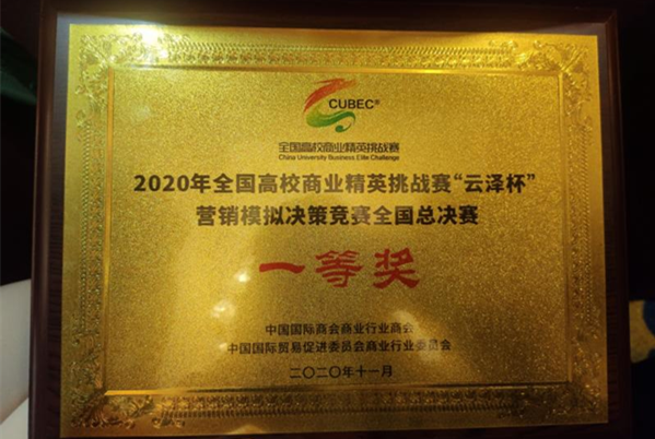11月28日,由中国国际商会商业行业商会和中国国际贸易促进委员会商业行业委员会共同主办,中国国际商会商业行业商会、广西商业学校承办的“2020年全国高校商业精英挑战赛营销模拟决策竞赛精英赛”在广西柳州顺利进行,必威西汉姆联经济管理学院学子代表bw必威西汉姆联官方网站参赛的“酸菜鱼队”获得季军。同时还在2020年全国高校商业精英挑战赛营销模拟决策竞赛总决赛中获得“最佳院校组织奖”“一等奖”;“百事可乐队”“酸菜鱼队”获“2021年亚太企业经营案例分析赛”的“入围奖”。