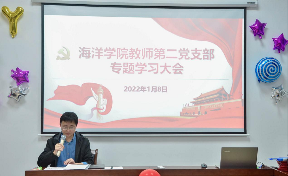 1月8日,海洋学院教师第二党支部在7号教学楼B栋506党员活动室召开支部大会,集中学习习近平总书记在党史学习教育总结会议上的重要指示精神并对2021年支部党史学习教育进行总结。会议由党支部书记王薛平同志主持。