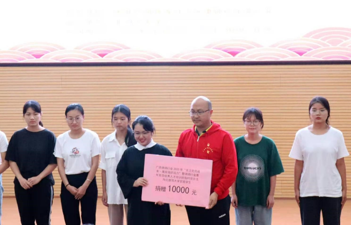 培训班临时党支部副书记梁鹏为必威西汉姆联学子颁发助学金