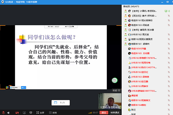 4月30日晚上,我院党委副书记李贤阳在2016级毕业班QQ群做“2020疫情就业形势分析和政策解读”就业专题讲座,毕业班学生通过QQ在线参加了本次讲座。