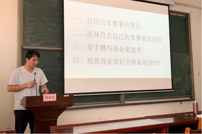 学院谭继算博士也结合往年带队参加“互联网+”大赛的经验为参加培训的教师梳理了项目建设、申报的具体操作方法和思路。