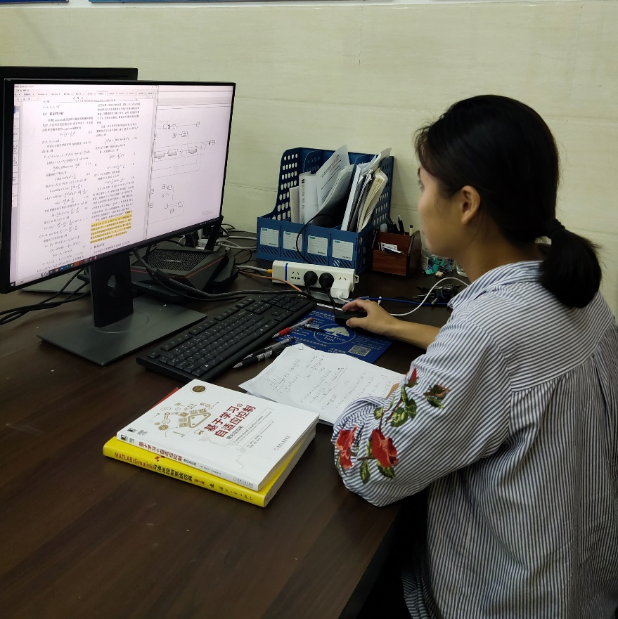 先端院2022级博士研究生李派霞正在阅读船舶航向控制的相关文献。通过文献阅读,建立船舶运动数学模型及仿真模型,全面学习、理解船舶运动控制的精髓。