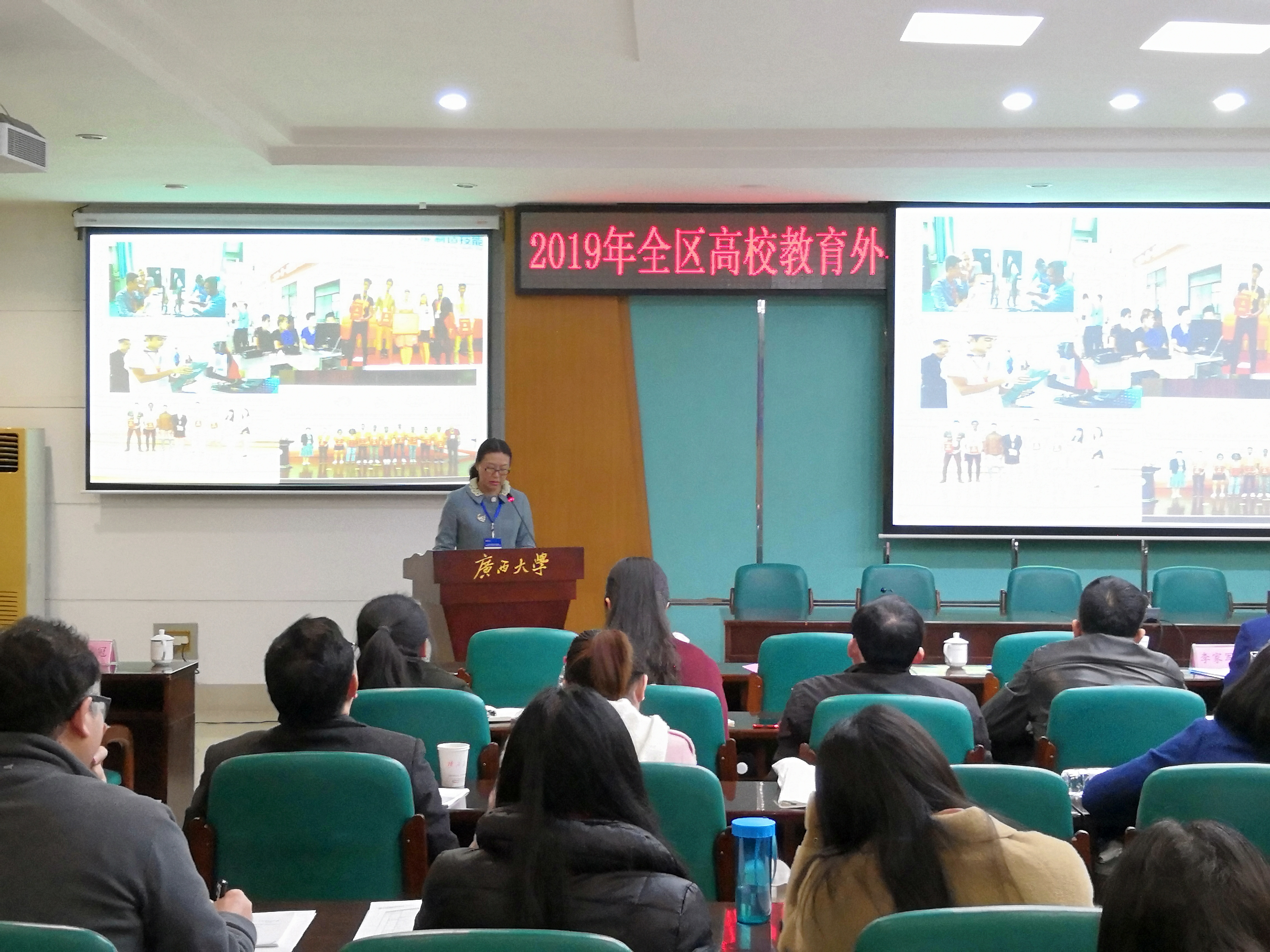教育部国际合作与交流司留学工作处副处长刘晓向与会人员作了关于国内留学生形势与相关国家政策的报告。教育厅对外合作与交流处处长罗耀光向与会代表传达了全区教育工作会议精神,认真总结了2018年全区教育对外开放工作,并部署2019年全区教育对外开放工作任务。