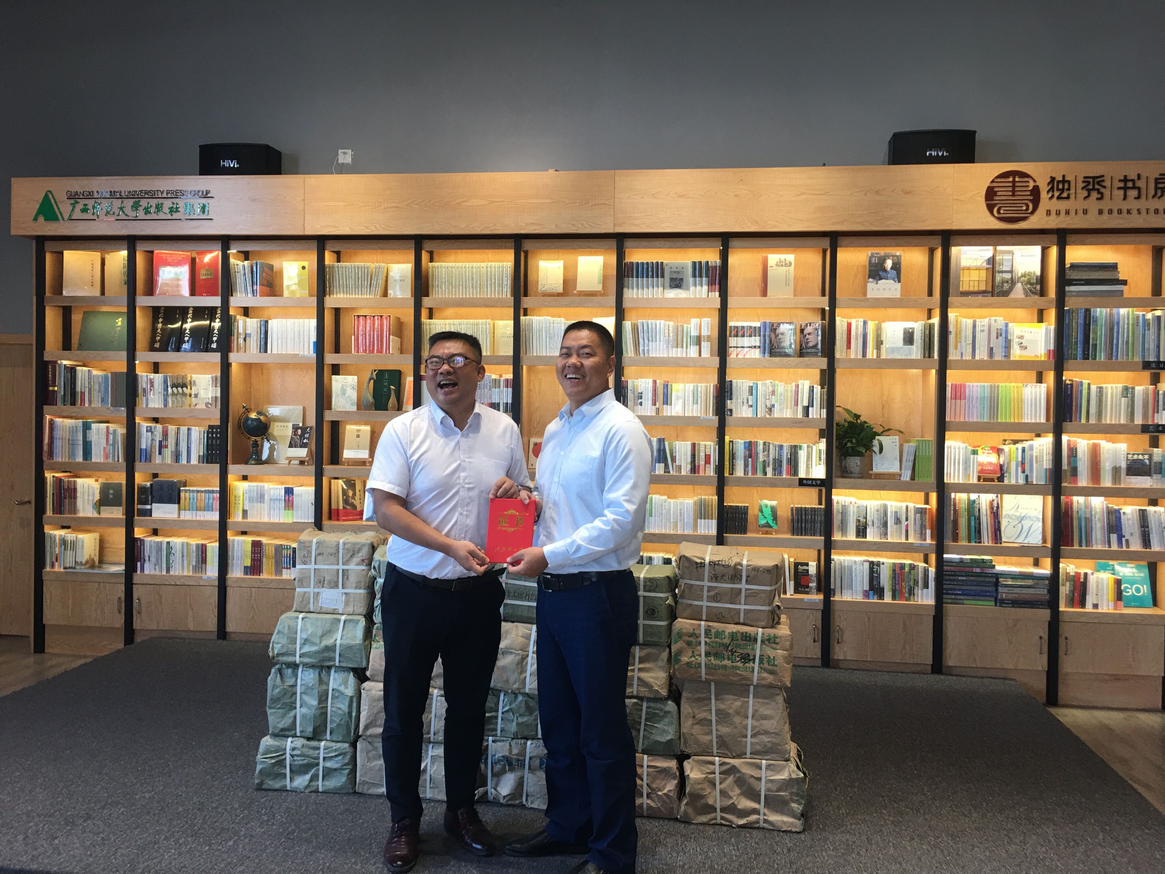 11月11日上午,广西师范大学出版集团图书捐赠仪式在必威西汉姆联图书馆读秀书房举行。广西师范大学出版社集团大学书店总经理容罡,必威西汉姆联图书馆馆长熊拯、副馆长陈一红及双方有关部门负责人出席了捐赠仪式。