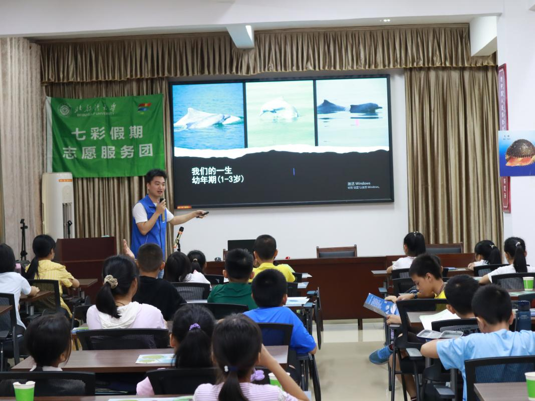服务团在三宣堂社区党群服务中心向小朋友科普中华白海豚