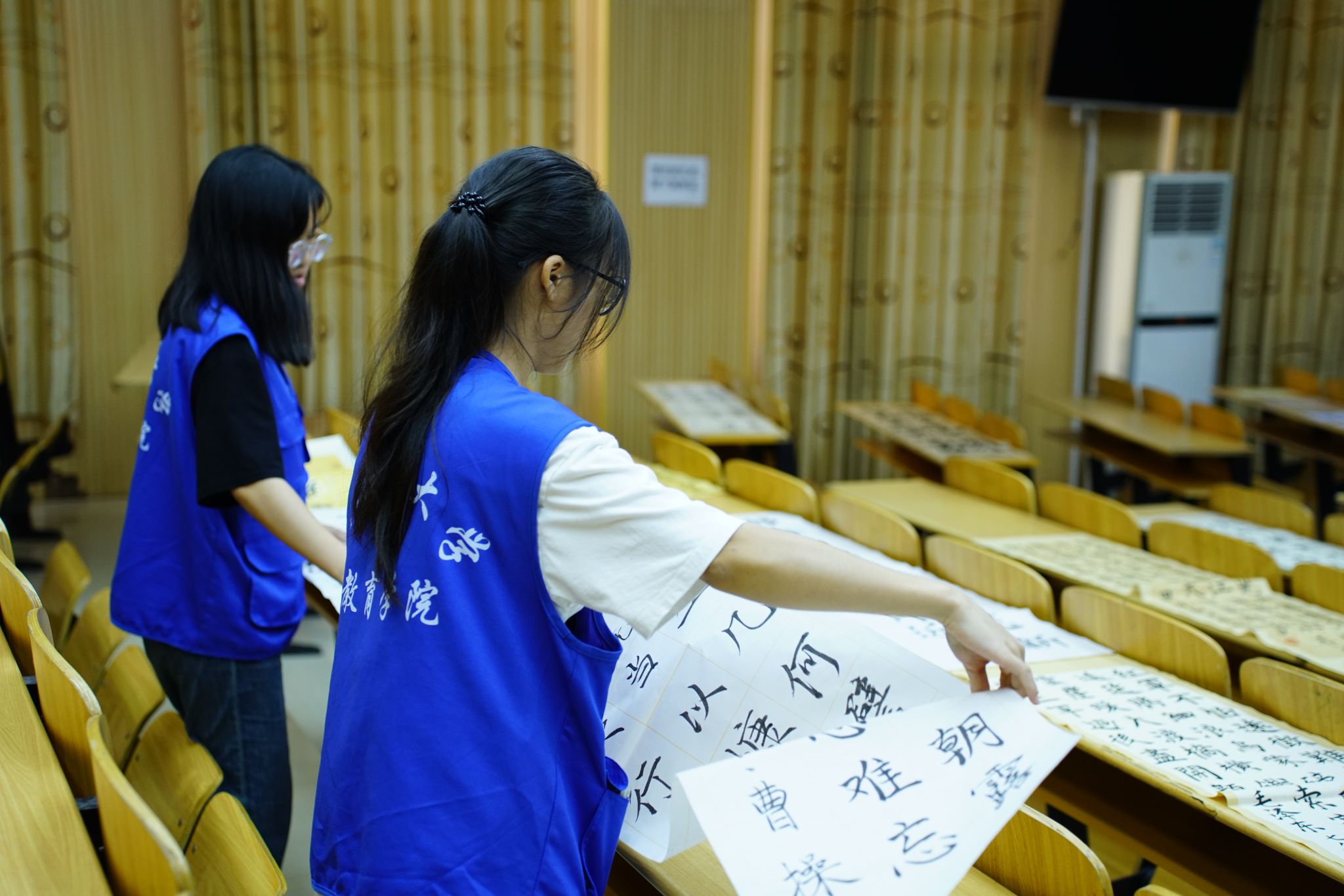 书法载道扬文化,墨香妙笔潜育人。本次三笔字大赛旨在营造书写规范字的校园氛围,提升学子对汉字的理解和认识,促使同学们从书法这一传统文化载体中挖掘、理解和感悟中国文化的精髓,厚植爱国主义情怀。(韦菲菲 摄)