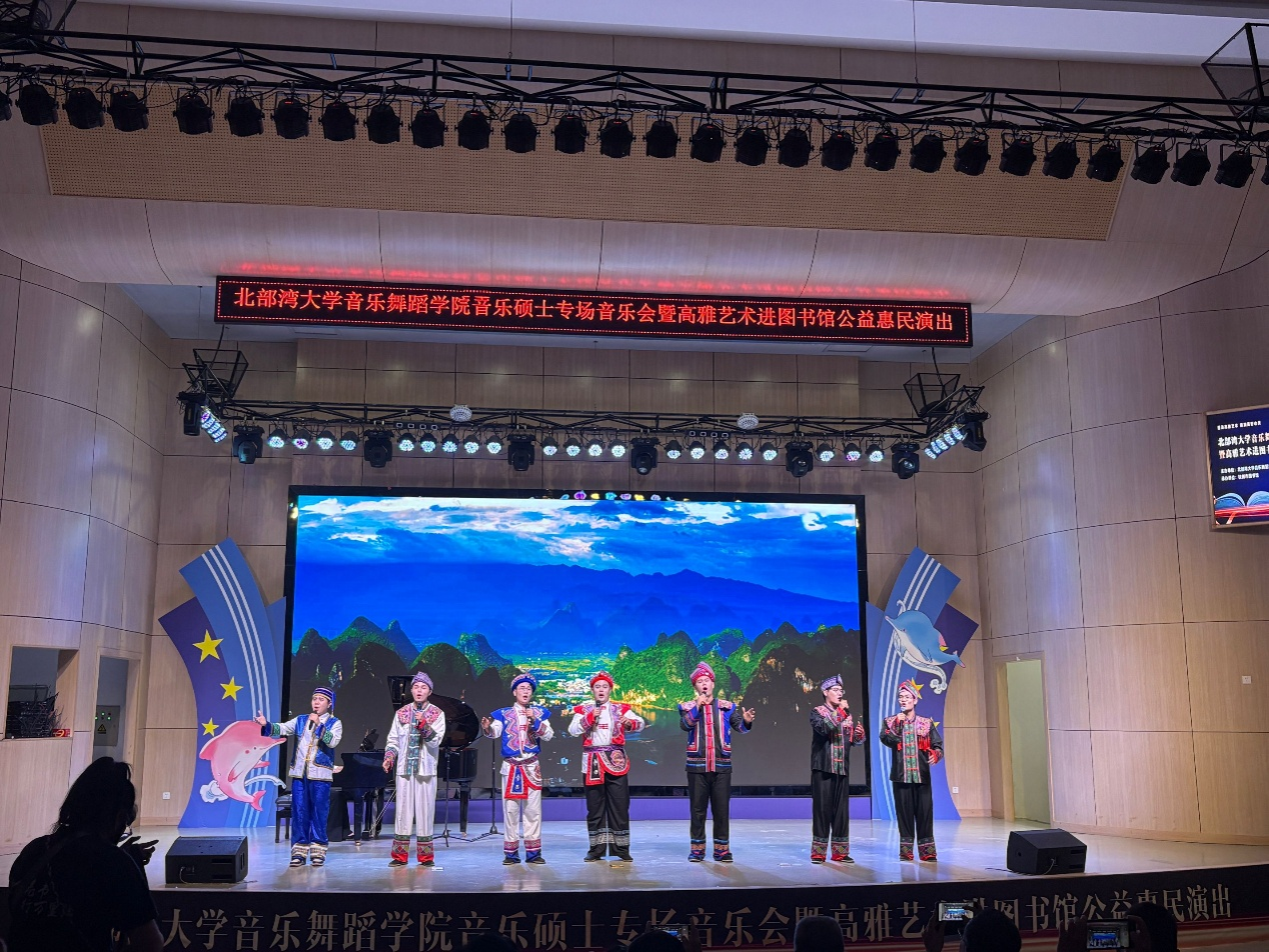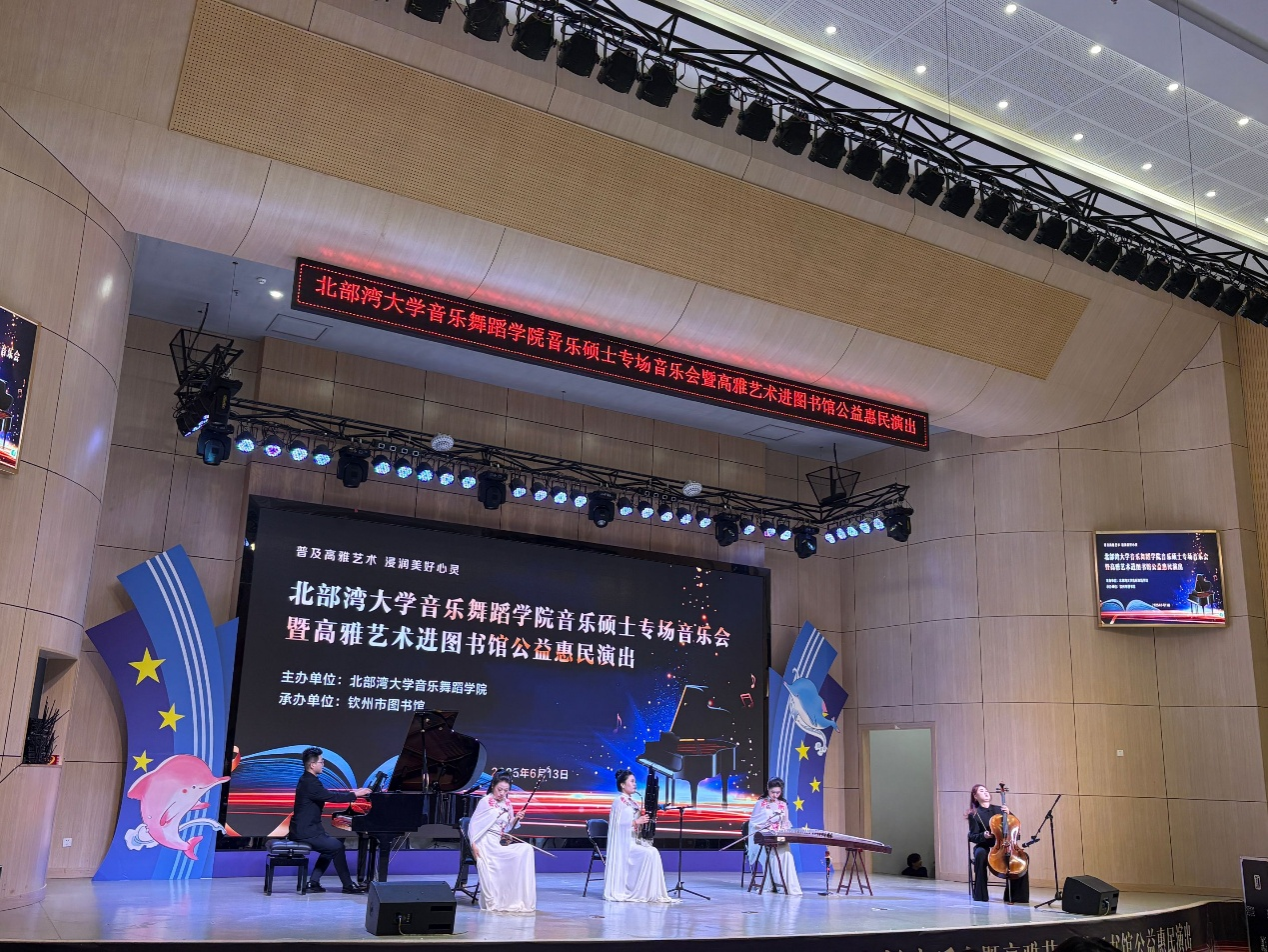 6月13日晚,学校音乐舞蹈学院联合钦州市图书馆举办的“普及高雅艺术 浸润美好心灵”音乐硕士专场音乐会暨高雅艺术进图书馆公益惠民演出圆满落幕。活动通过创新馆校合作模式,将高雅艺术引入公共文化空间,为近300名市民呈现了一台融艺术展演与阅读推广于一体的文化盛宴。