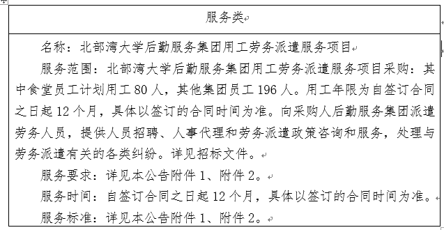 二、项目名称: bw必威西汉姆联官方网站后勤服务集团用工劳务派遣服务项目
