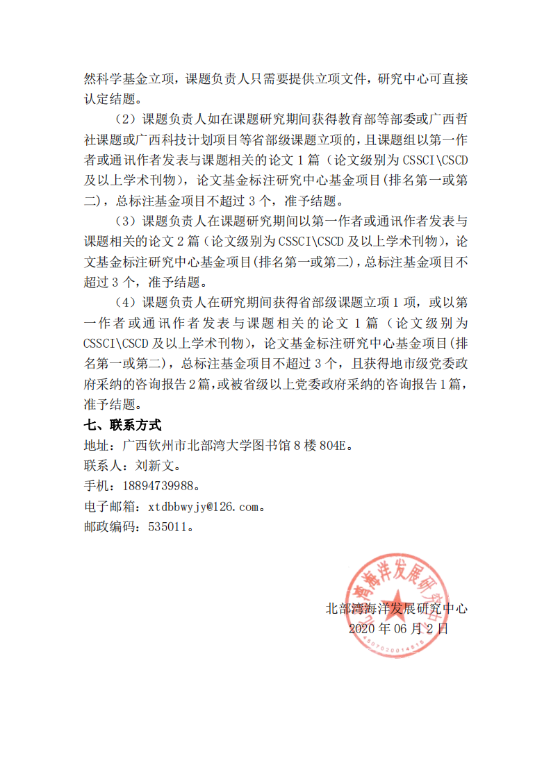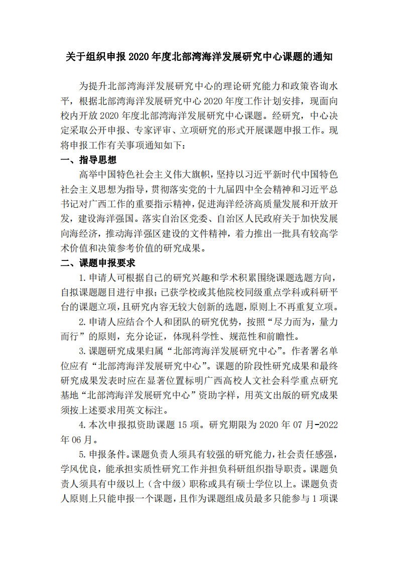 关于组织申报2020年度北部湾海洋发展研究中心课题的通知