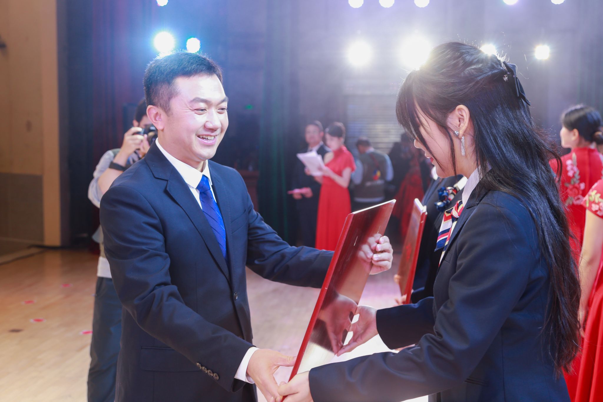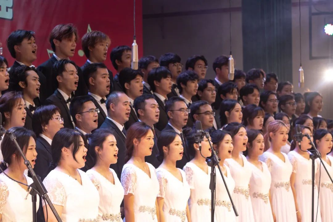 随后,学校领导率人文学院十二点半合唱队率先登台。“向着大海去远航,拥抱未来的力量;朝星辰大海的方向,不惧长路漫漫”歌声铿锵有力、慷慨激昂、荡气回肠,他们以昂扬的姿态引吭高歌,用歌声的力度与温度唱响湾大故事、传递湾大精神。师生齐唱,敞开胸怀、纵情高歌,展现了湾大人团结友爱、勇于拼搏和乐观豁达的品质。这份旋律带来的温情与活力瞬间将现场的气氛推到高潮。