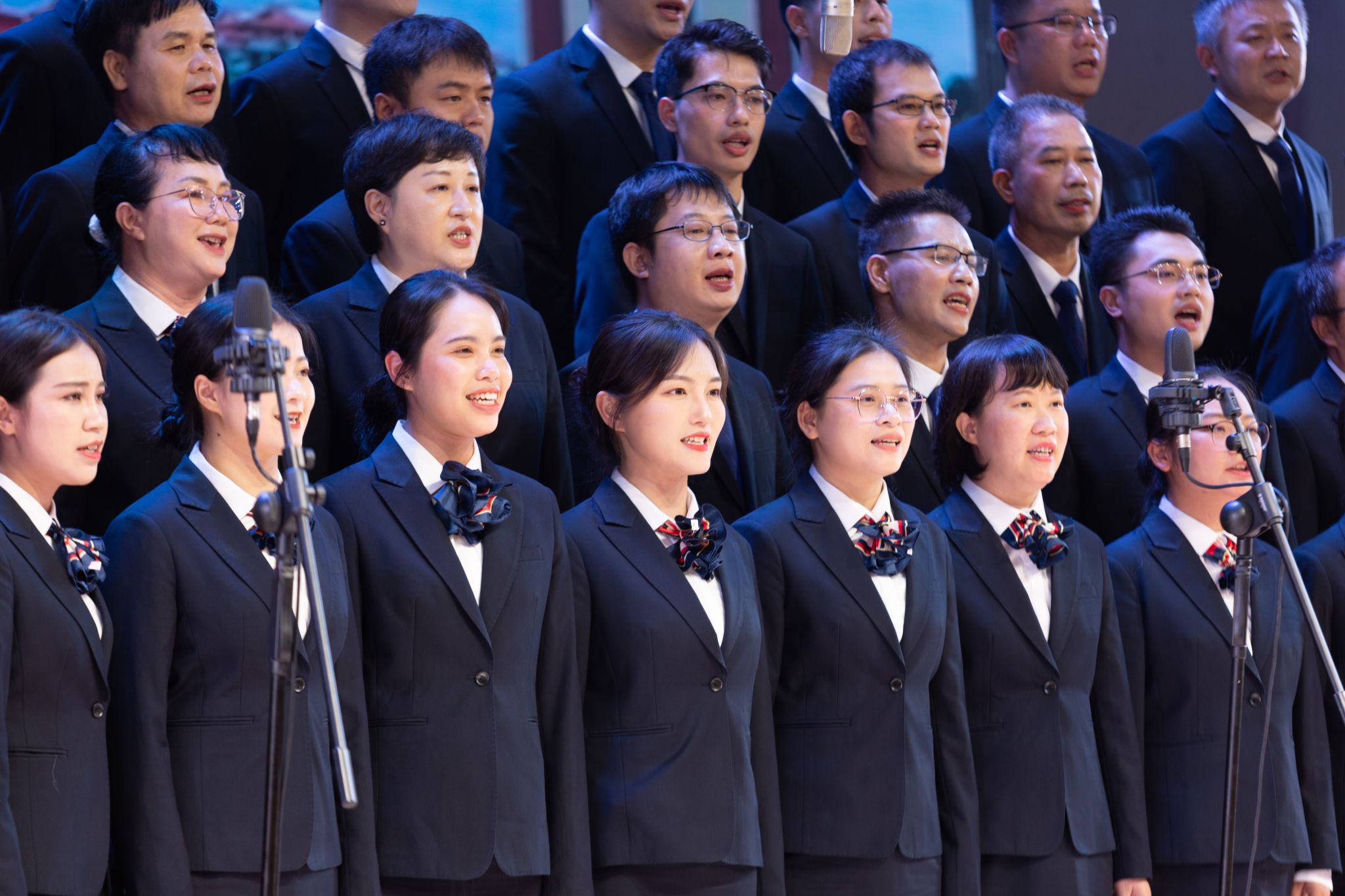 十四支参赛队伍创新合唱的表现形式:合唱融合独唱、以朗诵带动合唱、二重唱、丝竹管弦......他们用各种别出心裁的巧思让比赛现场变得丰富多彩。教职工们以最振奋的精神和最饱满的姿态将校歌化作赞歌,一字一句地传唱湾大成长历程,高昂的歌声中蕴含着与湾大风雨同舟的精神力量。他们用歌声传递心声,为湾大即将到来的五十岁生日送上深切的祝福。