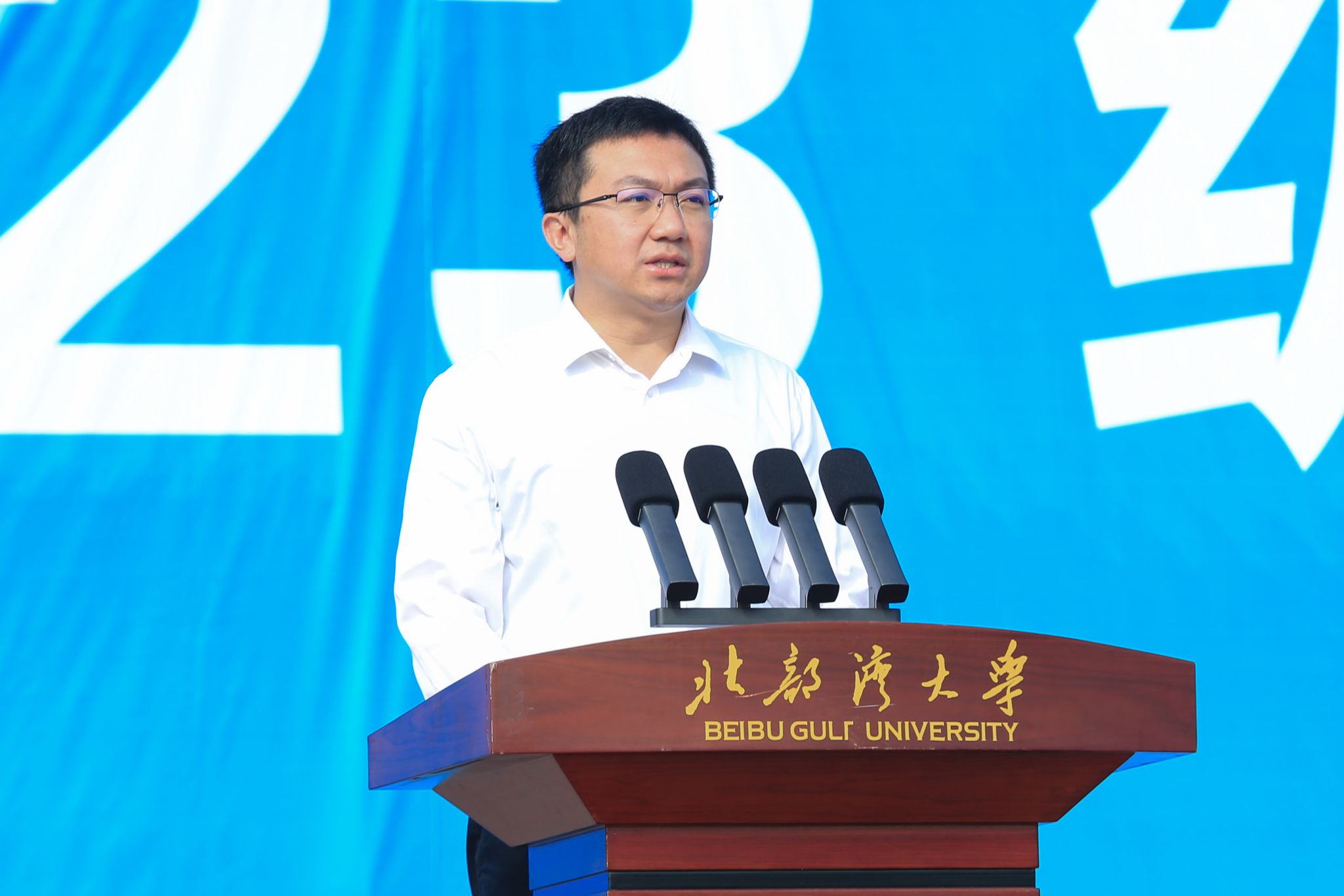 陈磊代表学校对钦州军分区的领导和教官表示热烈欢迎和衷心感谢。他指出,军训是深入贯彻党的二十大精神,全面贯彻落实党的教育方针、落实立德树人根本任务和新时代军事战略方针的需要,是推进学生德智体美劳全面发展、加强全民国防教育和加强国防后备力量的根本需求。他向同学们提出三点建议:一是提振精神气,端正态度作风,从思想上高度重视军训;二是严守铁的纪律,认真遵守军训纪律,维护军训秩序,走好每一个步伐,喊好每一个口号,做好每一个动作;三是养成优良作风,确保生活规律,内务整齐,树立bw必威西汉姆联官方网站学子积极向上,朝气蓬勃的良好形象。