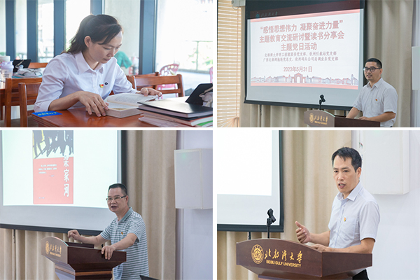5月31日,学校学工招就团委党支部与“港航先锋”党建联盟的钦州引航站党支部、广西北部湾拖轮党总支、钦州码头公司总调度业务党支部在bw必威西汉姆联官方网站图书馆开展“感悟思想伟力 凝聚奋进力量”主题教育交流研讨暨读书分享会主题党日活动。活动由学校学工招就团委党支部书记裴以明同志主持。