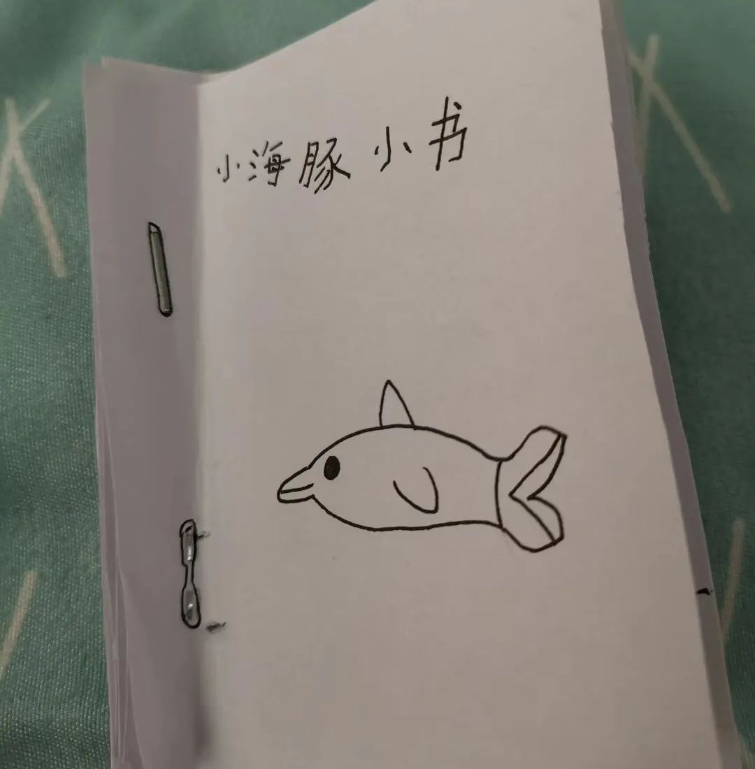 工作之余,吴海萍经常给自己的女儿科普海洋知识,与她讲述海洋里的故事。她的女儿将那些从妈妈口中听到的故事画在了一本小册子上,并取名为《小海豚小书》。“我觉得这也算是一个潜移默化的过程吧。”吴海萍笑着说。