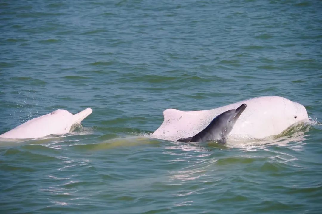中华白海豚是国家一级保护野生动物,钦州三娘湾海域栖息有超过350-450头中华白海豚,这片海域,是国内目前少数仍然保有自然状态的栖息环境,对于研究海洋可持续经济与资源保护如何协调发展,有得天独厚的优势。