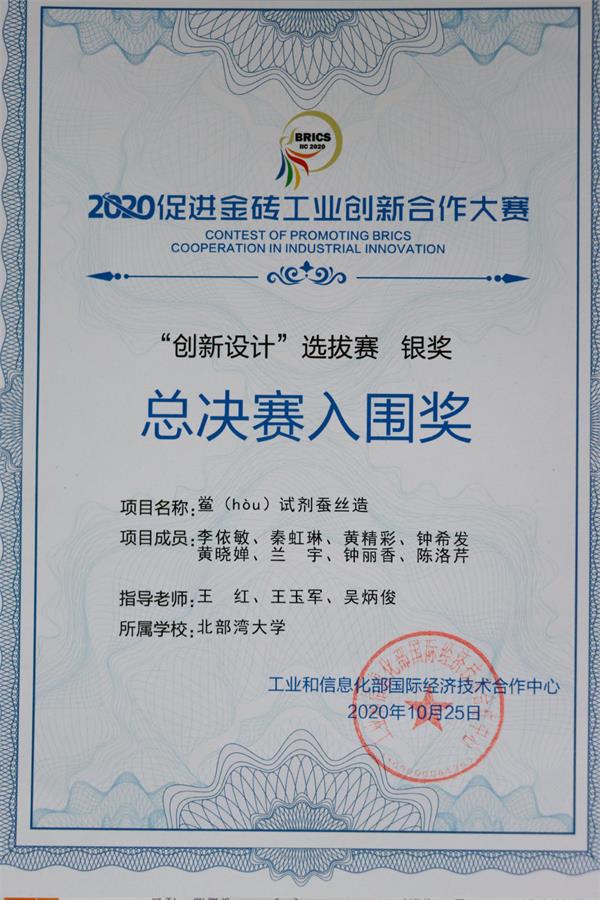 3.获得“2020促进金砖工业创新合作大赛”“创新设计”选拔赛银奖、总决赛入围奖;