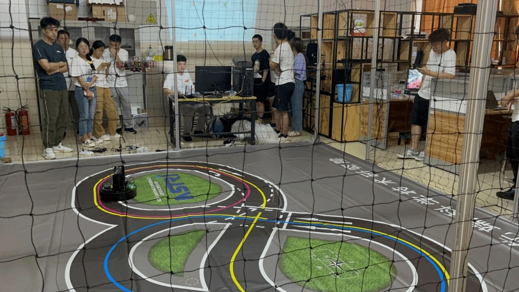 烈日炎炎、暑假留下来学习的氛围也同样热火朝天。在先端院无人系统实验中,夏博士介绍到随着无人设备行业的高速发展,多机器人、编队、集群以及协作等应用频率越来越高。特别是无人集群系统,在灾情救援、智能物流和消费娱乐等方面展现出了极大的应用场景。并现场演示了多智能体的协同控制、机器人定位导航的演示与讲解,各位研究生同学都展现出对无人系统极大的兴趣。朱教授与夏博士在暑假期间对无人系统的各位成员亲切指导,在浓厚的科研氛围下,大家都表示希望在暑假期间取得一定的成果。