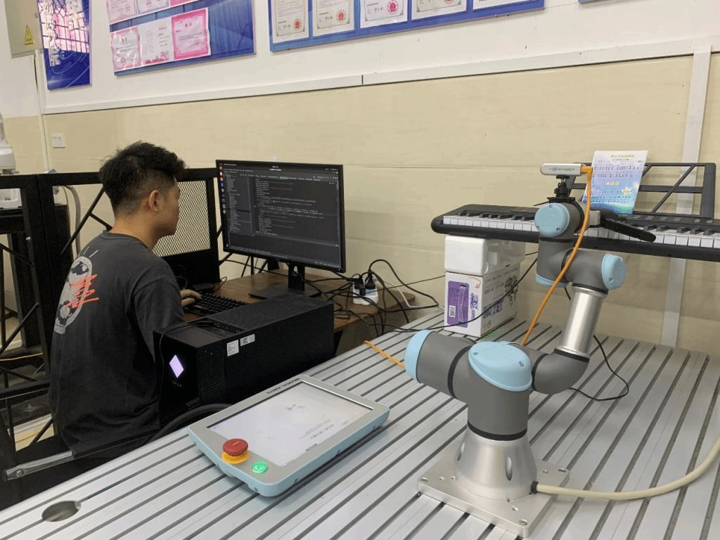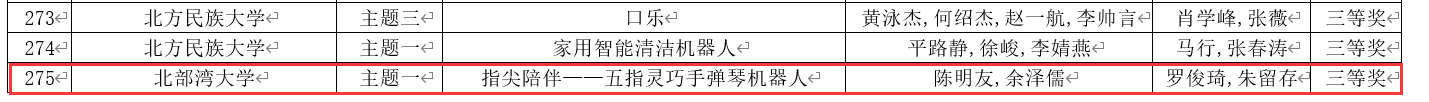 该项目是必威西汉姆联唯一进入区赛项目。在朱留存老师和罗俊琦老师的指导下,我院项目《指尖陪伴——五指灵巧手弹琴机器人》经过技术攻关,持续改进,在本次比赛中取得省级三等奖的成绩。