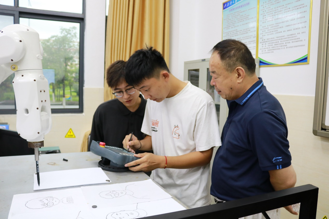 你要问做科研苦不苦累不累,也许他们有特别的答案。这是一台神奇的绘画机器人,只要现场给你拍一张照片,他就能在几分钟之内为你画出一幅惟妙惟肖的画像。2020级机械硕士武宏伟和2021级机械硕士王甘霖正在准备为前来视察的领导绘制画像。苦苦科研是为了我们的生活更加美好,这样一个趣味性十足的科研产品不就是最好的证明吗?